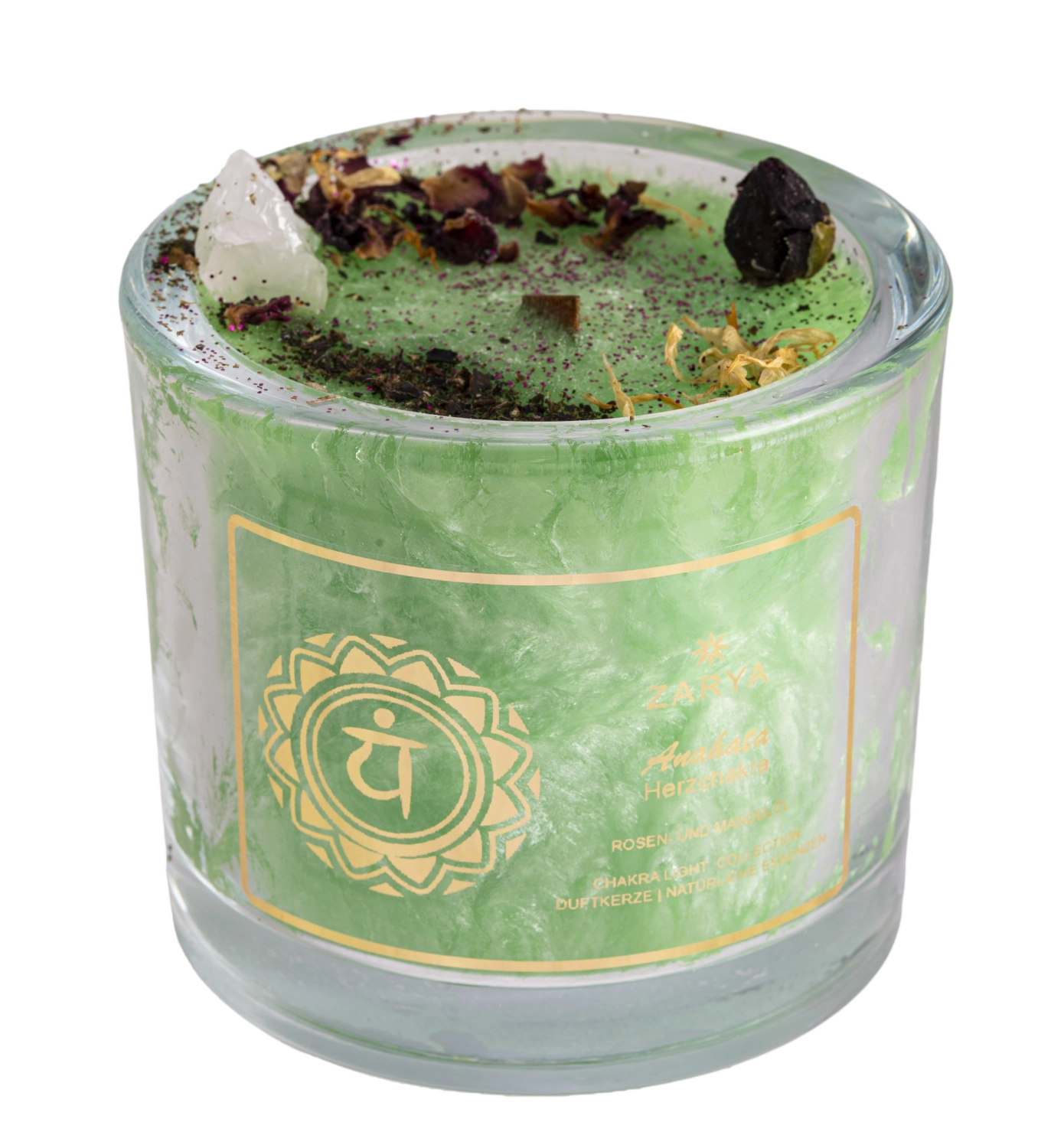 mit Fluorit, Rosenquarz & Rosenblüten.